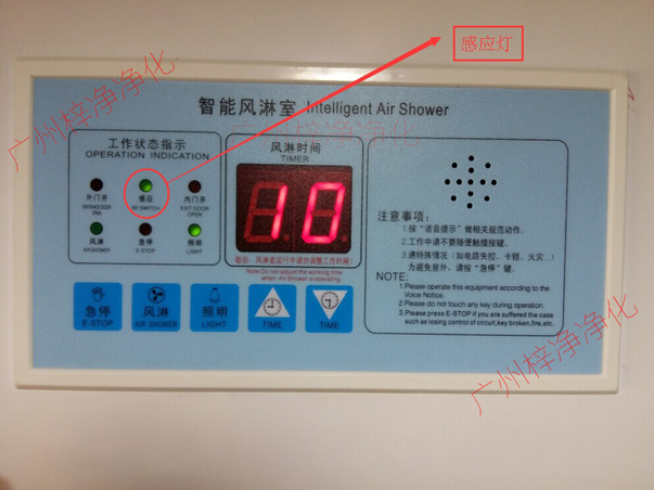 前幾天去售后一臺風(fēng)淋室,2013年購買的,更換了風(fēng)淋室控制器,風(fēng)淋室可以吹淋了,正準(zhǔn)備要走,被客人叫了回去。原來客人發(fā)現(xiàn)在風(fēng)淋室關(guān)了前門人員沒有進去也會自動吹淋,于是我們風(fēng)淋室安裝師傅觀察了一下風(fēng)淋室顯示板,感應(yīng)燈一直亮(正常情況下,感應(yīng)燈是閃爍的),問題就出在這了,看下圖: