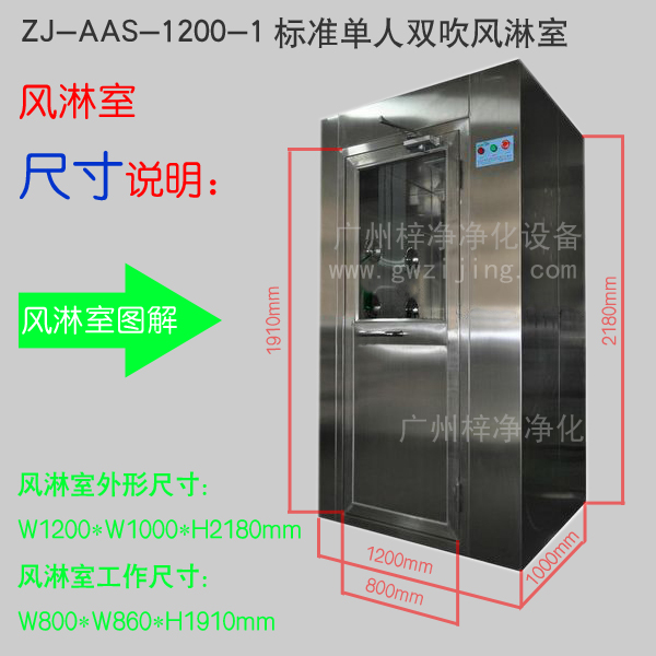 ZJ-AAS-1200-1標(biāo)準(zhǔn)單人雙吹風(fēng)淋室尺寸說(shuō)明實(shí)物效果圖解析