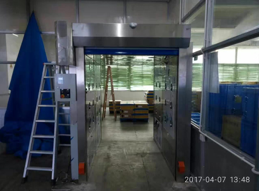快速卷簾門(mén)貨淋室是人員進(jìn)入潔凈室所必需的通道,為了減少人員進(jìn)出潔凈室所帶來(lái)的大量灰塵,在潔凈室的入口處安裝功能齊全的氣閘室,可以減少空氣污染,當(dāng)人員通過(guò)風(fēng)淋室時(shí),污染的塵埃粒子經(jīng)過(guò)高效過(guò)濾的高度潔凈氣流射掉。