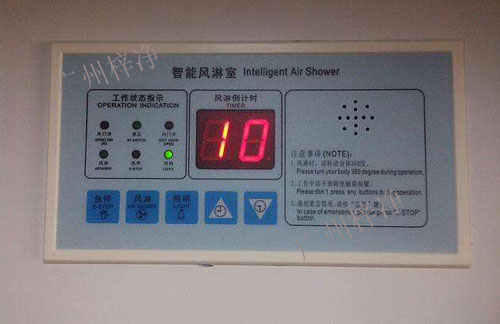 9、下班時(shí)先按風(fēng)淋通道操作面板上的“電源”鍵,此時(shí)電源顯示燈滅,再將風(fēng)淋通道的總電源開關(guān)關(guān)閉。