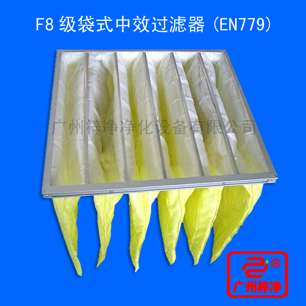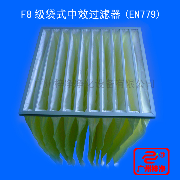 F8級袋式中效過濾器采用超細合成纖維以特殊工藝制成,避免舊式玻璃纖維材料可能對人體造成的危害,濾料內(nèi)含有防靜電纖維,對空氣塵埃顆粒過濾特別好,具有過濾面積大、吐氣性 高、使用壽命長等特點。