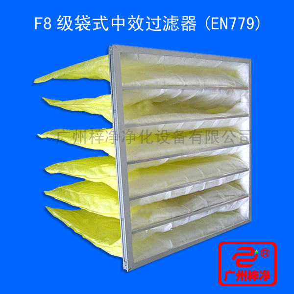 F8級袋式中效過濾器一般采用無紡布或進口玻璃纖維作為濾料,采用超細化纖纖維濾料,容塵量大、使用周期內(nèi)效率穩(wěn)定。