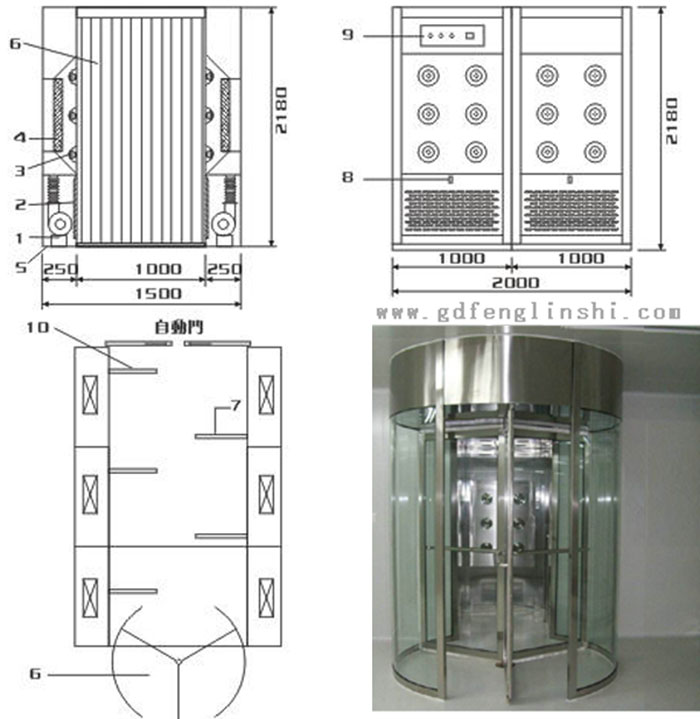 三、旋轉(zhuǎn)門風(fēng)淋室部件結(jié)構(gòu)組成: