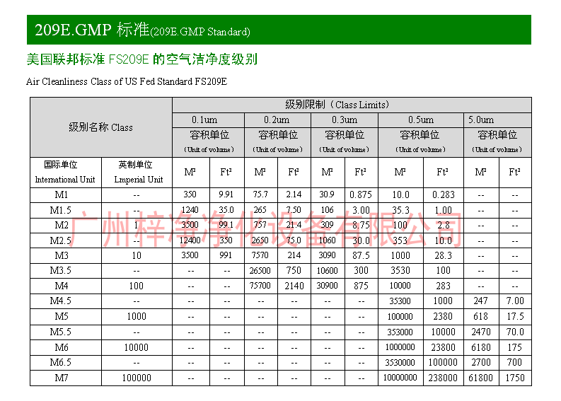 美國聯(lián)邦標(biāo)準(zhǔn)FS209E的空氣潔凈度級別出處:廣州梓凈凈化設(shè)備有限公司 官方網(wǎng)站http://www.jpleal.com/
