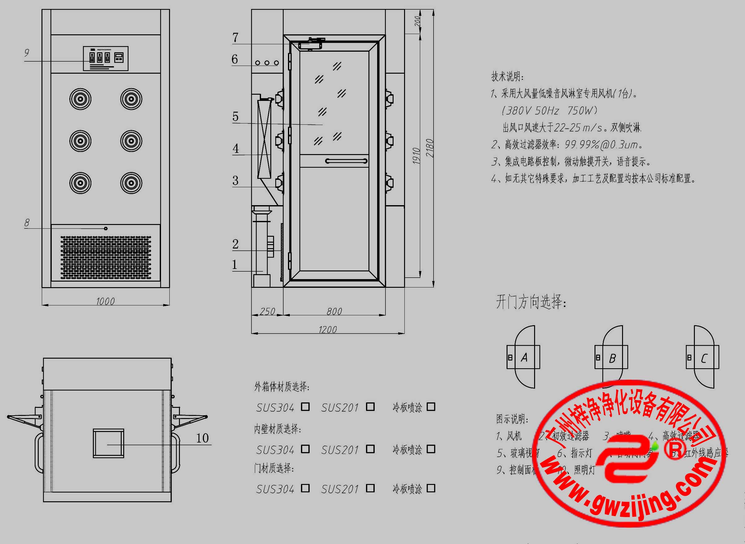 >>電源:380V 50Hz(可為客戶非標(biāo)私人定制110V,460V,60Hz等非標(biāo)電壓頻率風(fēng)淋室)