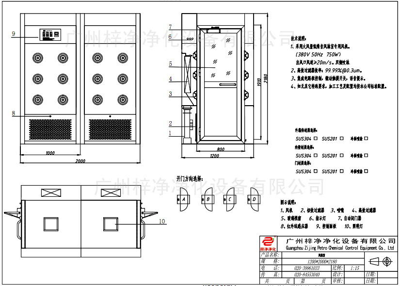 雙人雙吹風(fēng)淋室尺寸標(biāo)準(zhǔn)參數(shù)是附合國(guó)內(nèi)外潔凈室通用