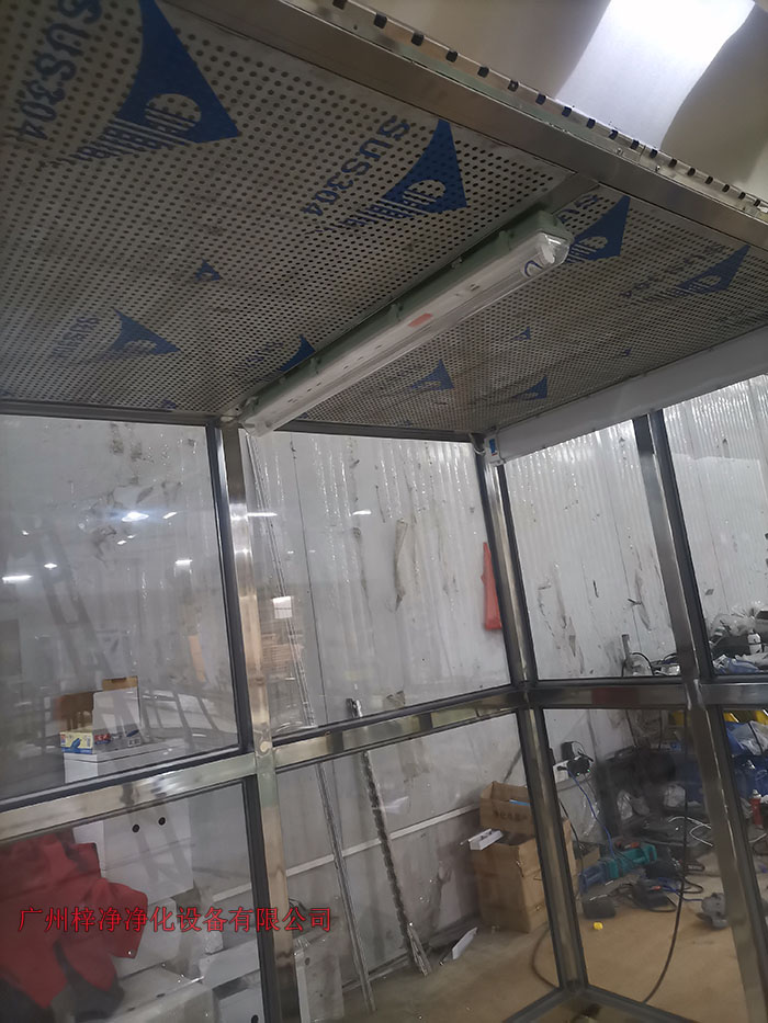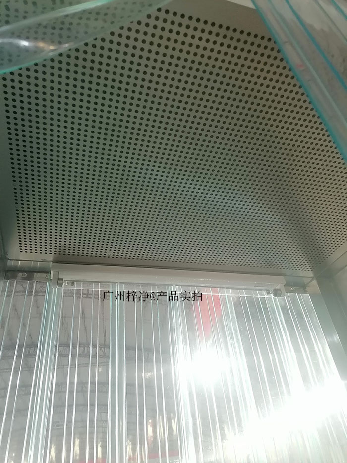 5、工作區(qū)兩側(cè)為不銹鋼擋板,前后為條形防靜電防塵垂簾,達(dá)到理想防塵效果