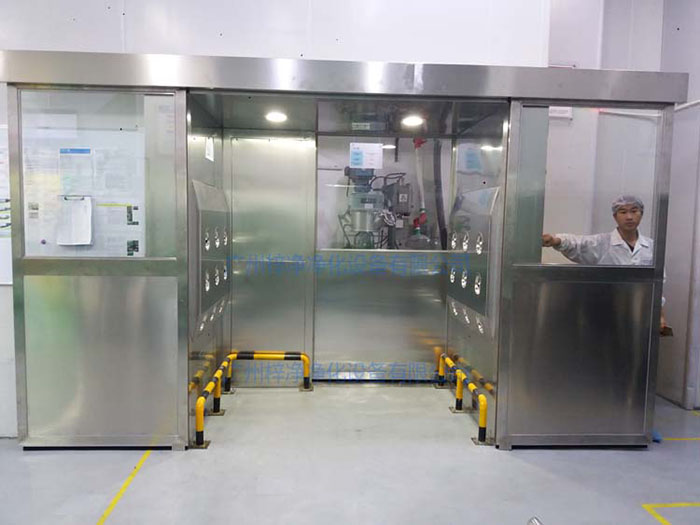 風(fēng)淋室主要是吹除工作人員衣物、發(fā)屑、體表所吸附塵埃;貨淋室是吹除人或物體表面吸附塵埃。