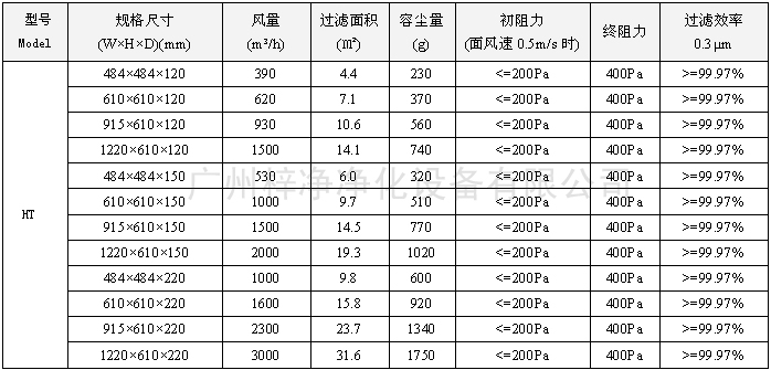 250度耐高溫高效空氣過濾器尺寸風量容塵量技術(shù)參數(shù):
